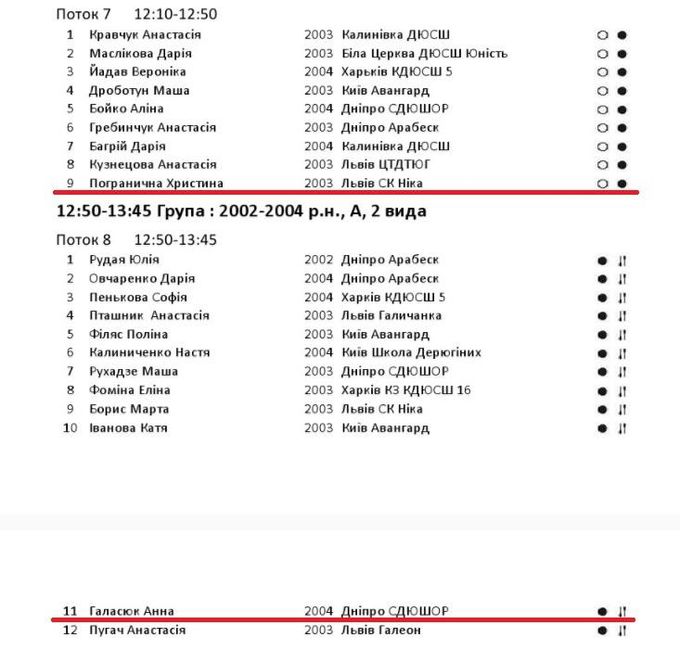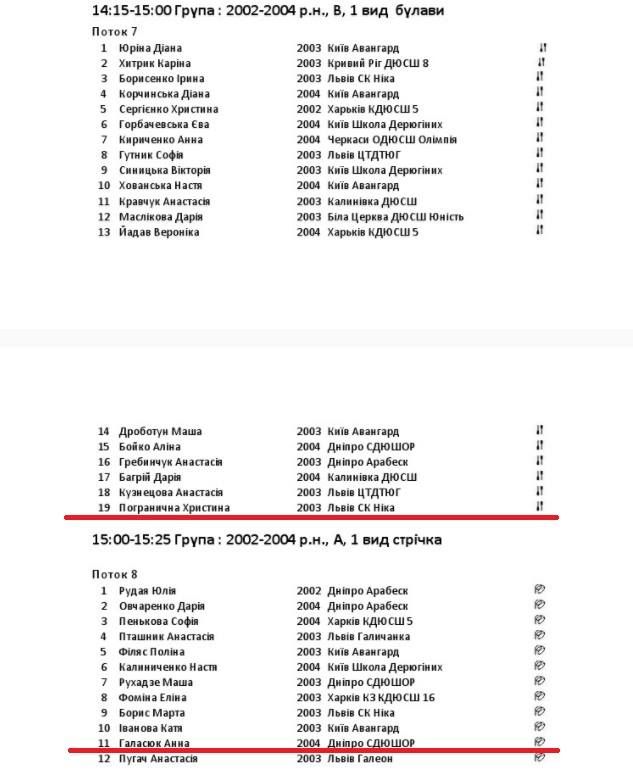 В соревнованиях участвует лидер юниорской сборной Кристина Пограничная и член резерва юниорской сборной Анна Галасюк (2003).