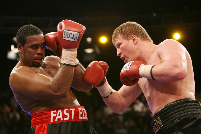Неуверенность Александра продолжалась во втором раунде, в ходе которого быстрый удар Эдди наградил его солидной гематомой под глазом. Впрочем, Александру повезло и его глаз не раздулся, как у Голоты неделю назад.