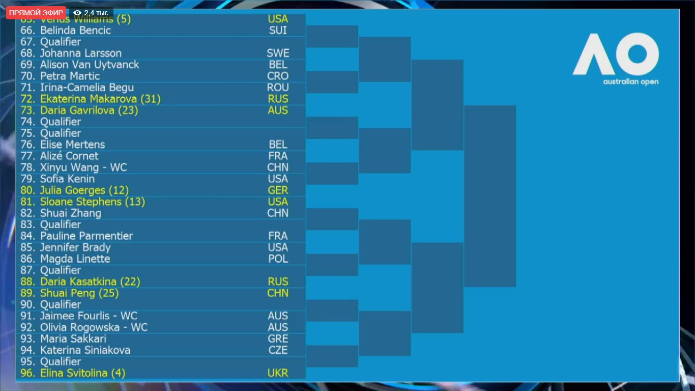 В Мельбурне состоялась жеребьевка женской сетки Открытого чемпионата Австралии, где заявлены четыре украинки.