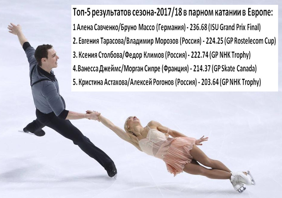 В декабре 2017-го Савченко и Массо выиграли финал Гран-при ИСУ в Нагое, опередив всех своих главных конкурентов, и в статусе фаворитов подошли к чемпионату Европы. Но за неделю до его старта тренер пары Александр Кениг объявил, что его подопечные пропустят соревнования в Москве и будут целенаправленно готовиться к Олимпиаде. Таким образом немцы освободили дорогу к пьедесталу домашнего еврофорума трем российским парам, правда, бронзовые призеры Остравы-2017 Ванесса Джеймс и Морган Сипре из Франции могут с этим не согласиться. Думается, что не прочь будут вписать новую страничку в свою биографию также итальянцы Николь Делла Моника и Маттео Гуаризе.