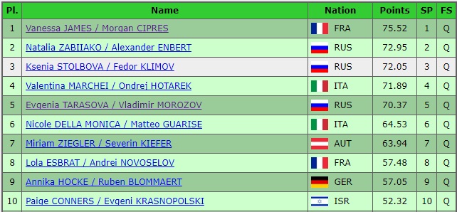 Французская пара Ванесса Джеймс и Морган Сипре выиграли короткую программу на чемпионате Европы по фигурному катанию, который сейчас проходит в Москве. Действующие чемпионы Европы Евгения Тарасова и Владимир Морозов оказались лишь на пятом месте. Напомним, Украина не была представлена в этом виде соревнований.