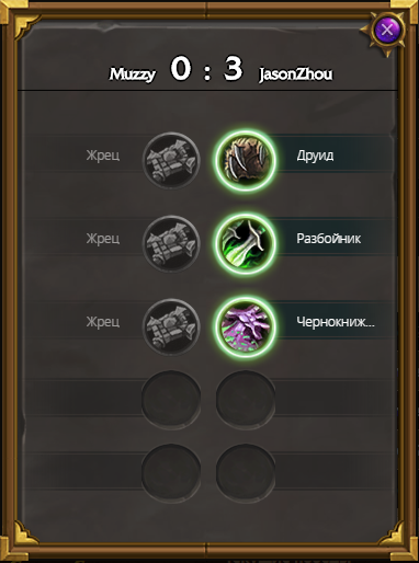 Второй парой были: JasonZhou и muzzy. Желание американца играть на деке «Жрец» сыграло с ним плохую шутку, еще одно 3-0.