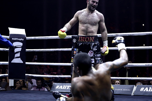 Юньер Дортикос на канвасе после сокрушающего удара Мурата Гассиева. Фото Getty Images