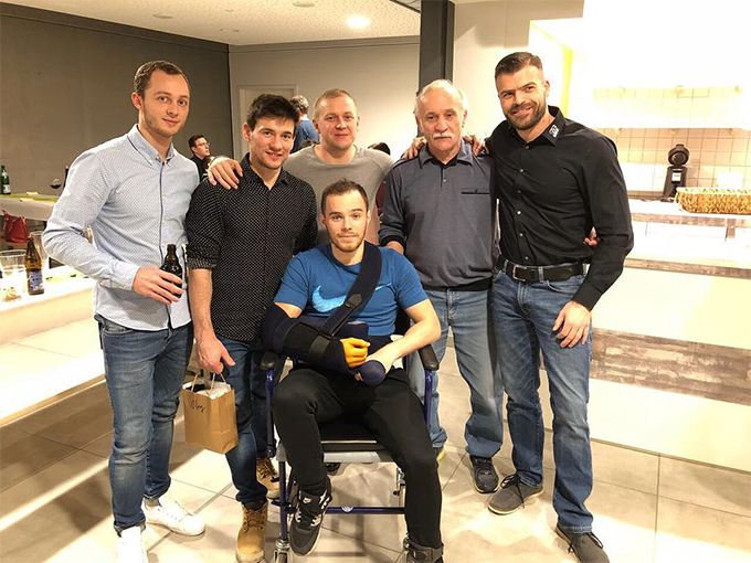 Олег Верняев после операции в Германии с представителями немецкого клуба TG Saar