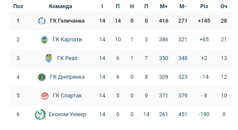 Поточна турнірна таблиця після попередніх семи турів (14 ігор):