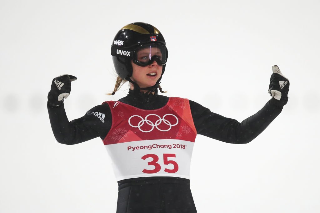 Олімпійською чемпіонкою в стрибках з трампліну стала норвежка Марен Лундбю. Срібло - у німкені КатаріниАльтаус, бронза – у японки Сари Таканасі.
