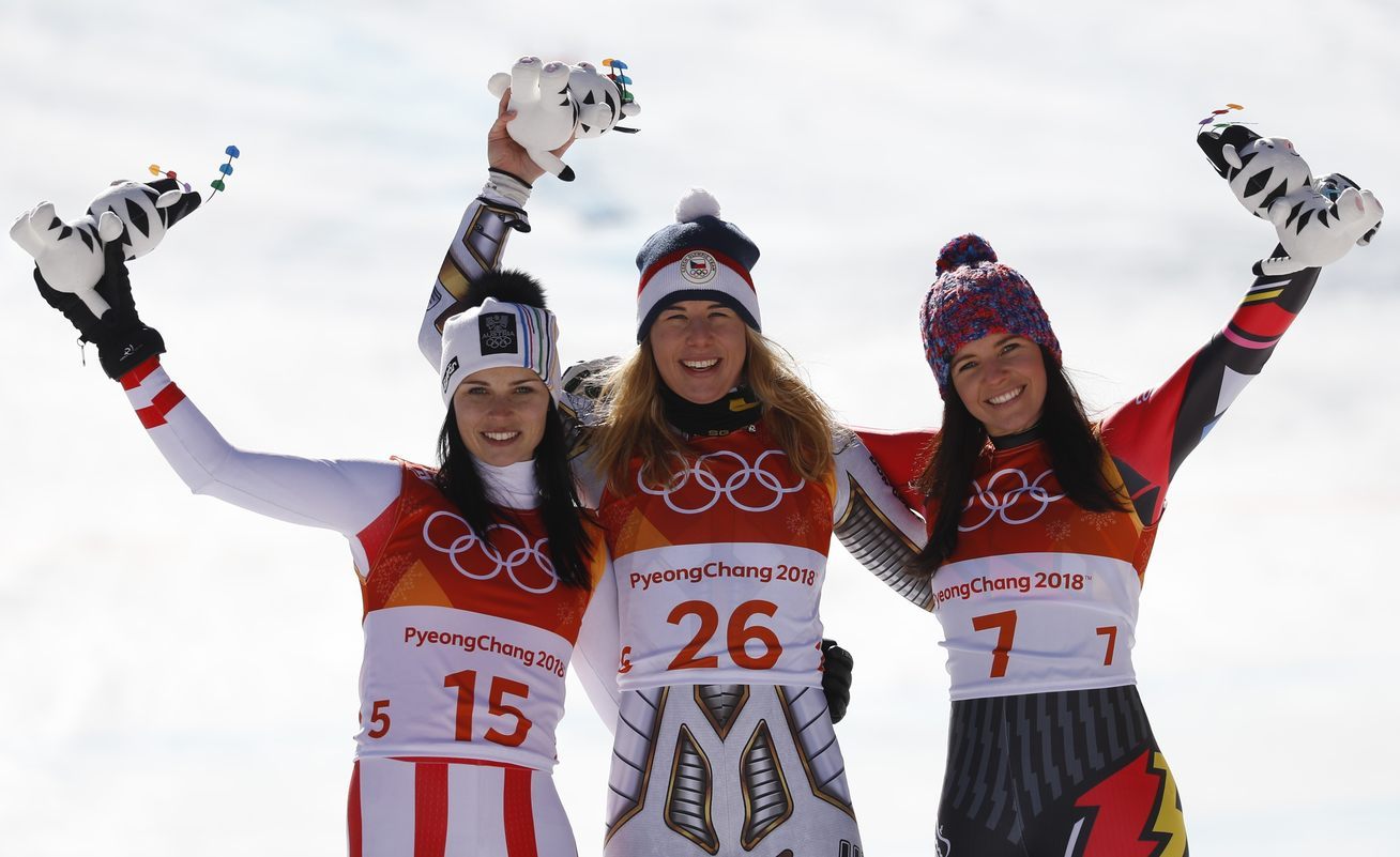 Українська гірськолижниця Ольга Книш фінішувала 43, останньою серед тих хто добрався до фінішу в супергіганті. Несподівано для всіх золото здобула чеська спортсменка Естер Ледецька, яка виступає в гірських лижах лише з 2016 року. Ледецька є більш відомою своїми змаганнями у сноуборді та має досягнення чемпіонки світу у паралельному слалому. Друге місце здобула австрійка Анна Файт. Третьою стала представниця Ліхтенштейну - Тіна Вайрайтей.