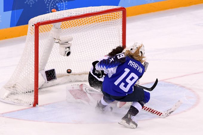 Сборная Соединенных Штатов празднует победу над Сборной Канады по хоккею