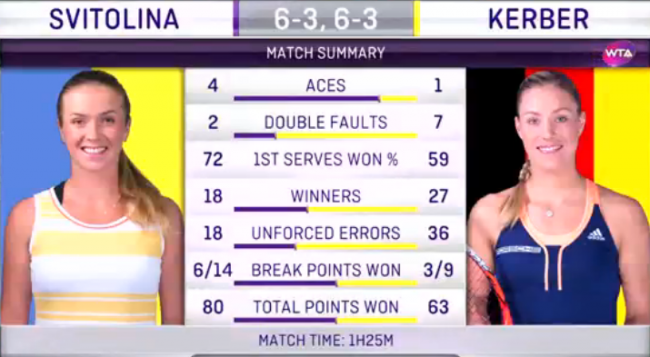 Элина Свитолина (Украина) – Анжелик Кербер (Германия) – 6:3, 6:3
