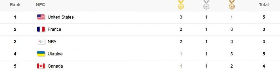 После первого дня Украина идет на четвертом месте в общекомандном медальном зачете после первого дня Паралимпийских игр-2018: