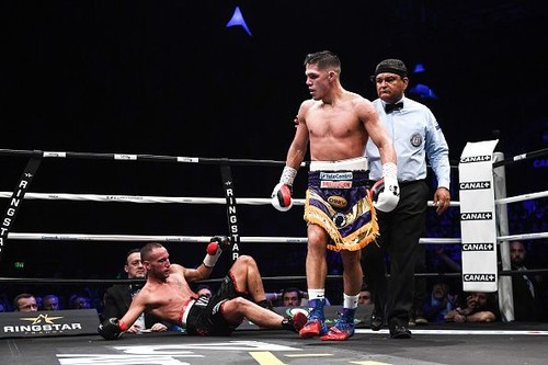 Бой начался вполне предсказуемо. Кастано цеплялся за соперника сериями жестких ударов, а Виту показывал технически грамотный бокс при работе с дистанции. Раунд был разделен на две части: в первой аргентинец прессовал француза своими плотными и не всегда хорошо разогнанными ударами, во второй части Виту отыгрывался за счет более быстрого жалящего джеба, подхватывая атаку правой сбоку.