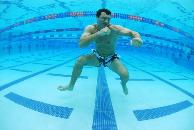 Свою подготовку к бою против Султана Ибрагимова Владимир Кличко не ограничивает занятиями в зале – ведь это лишь надводная часть айсберга. Подводной он занялся в North County Aquatic Complex, что в Палм-Бич.