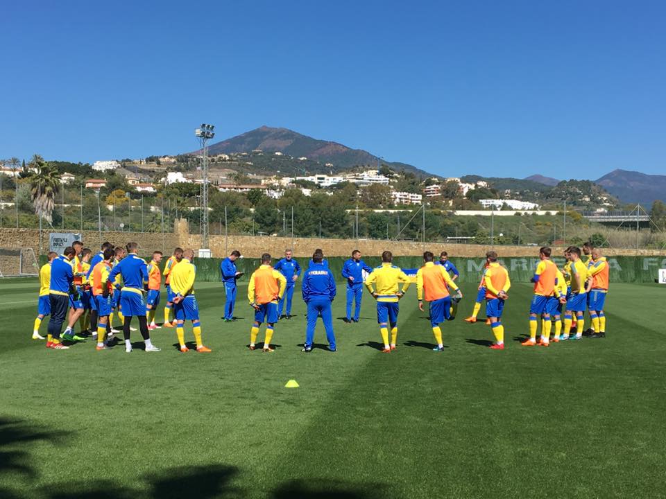 Перше тренування збірної Українив Іспанії відбулося за чудової погоди (+17) та сонячного настрою. Хлопці займалися з великим бажанням та максимальною концентрацією. Наприкінці тренування тренери дали можливість гравцям пограти у теніс-бол.
