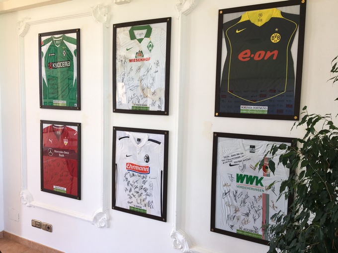 Тут - ігрові футболки багатьох німецьких клубів, є італійський «Інтер», португальська «Бенфіка», шотландський «Селтик».