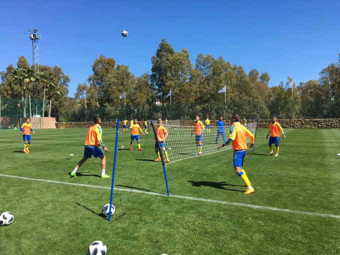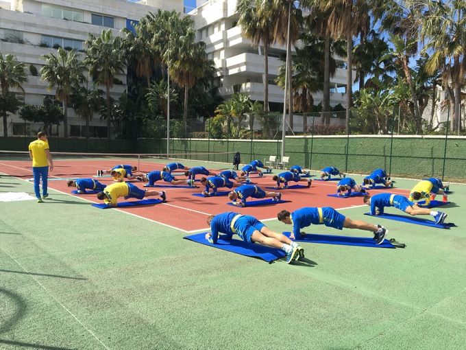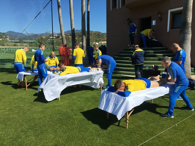 Погода у Марбельї різко контрастує з українськими снігами. Сонячне тепло дозволило масажистам розтирати гравців перед тренуванням просто на галявині біля приміщення роздягалень (заради справедливості треба сказати, що роздягальні тут дуже маленькі, у них немає де поставити масажні столи).