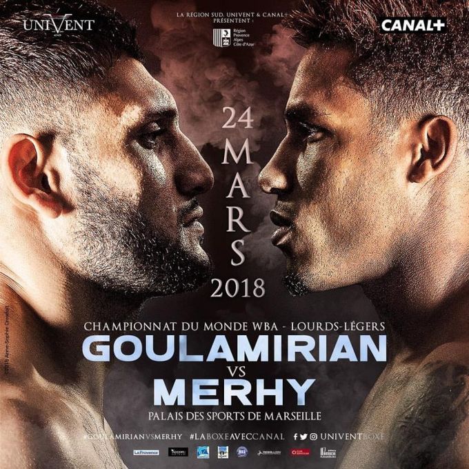 В главном бою вечера бокса сойдутся 30-летний Арсен Feroz Гоуламириан (22-0, 14 КО), владевший Континентальным титулом чемпиона по версии WBA, и 25-летний интерконтинентальный чемпион по версии WBA Рияд Мерхи (24-0, 20 КО).