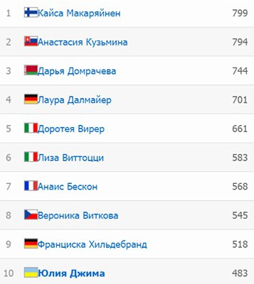 Кузьмина стала 6 -й и теперь перед гонкой масстарта проигрывает всего 6 очков. Вся борьба будет завтра