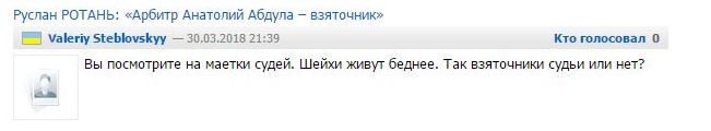 Руслан РОТАНЬ: «Арбитр Анатолий Абдула – взяточник»