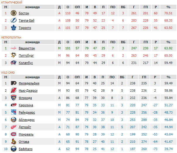 В Атлантическом дивизионе нельзя не отметить поражение Тампы-Бэй от Нэшвилла 1:4. Молнии уже давно вышли в плей-офф, однако последние неудачные результаты опустили Тампу на второе место дивизиона, а первый теперь Бостон.
