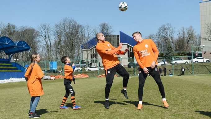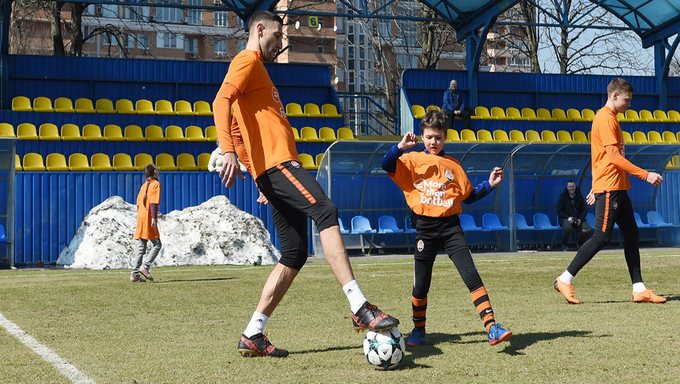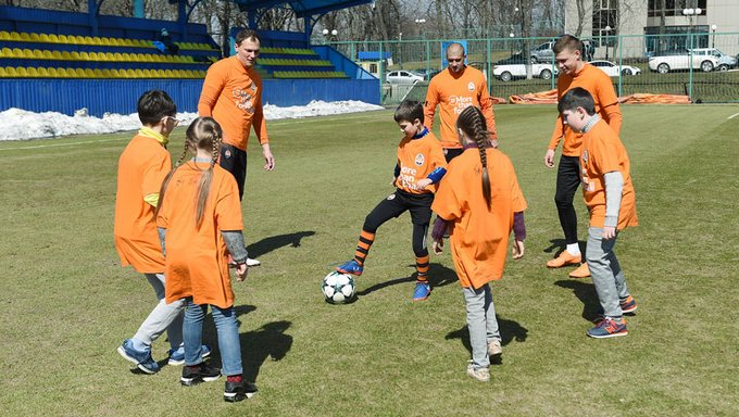 Игроки донецкого «Шахтера» в рамках европейской социальной кампании УЕФА #Morethanfootball Action Weeks провели тренировку с детьми-переселенцами.