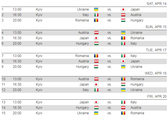 Кроме Украины и названных участников за повышение в классе будут бороться Италия, Австрия и Япония. Сам турнир проходит в одной группе, где каждая сборная сыграет с каждой по одному матчу.