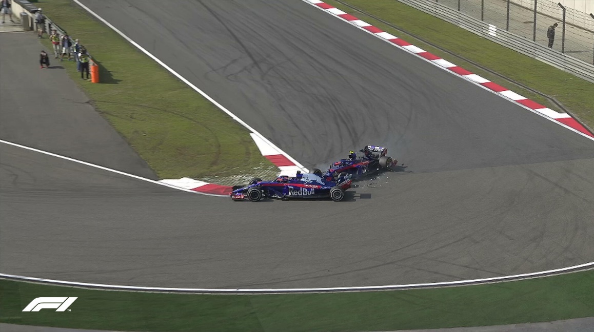Якщо Феттель продовжував їхати на відстані 1,5 секунди позаду Боттаса і шукав можливості наблизитися на відстань атаки, то цікавої боротьби за інші позиції серед топ-команд не було. Та все миттю перевернулося з ніг на голову після того, як Гаслі на 31-му колі в’їхав у машину свого напарника у шпильці 14-го повороту за що від стюардів отримав 10 секунд штрафу.