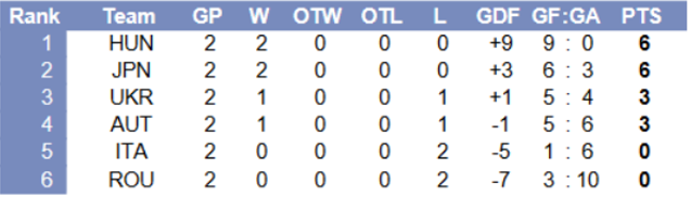 Украина остается третьей с тремя очками. Победитель группы повышается в классе, а вылетает последняя команда.