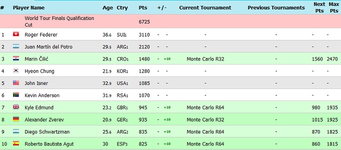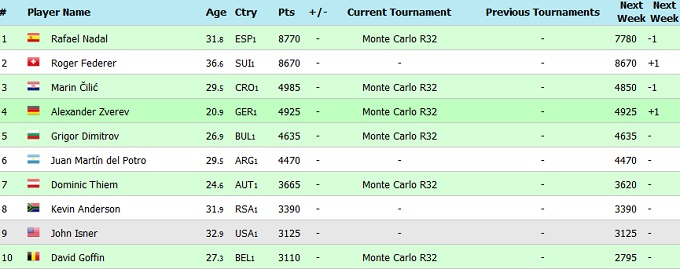 В первой десятке все спокойно. На Мастерсе в Монте-Карло, которому будет посвящена ближайшая неделя, выступят Надаль, Чилич, Зверев, Димитров и другие.