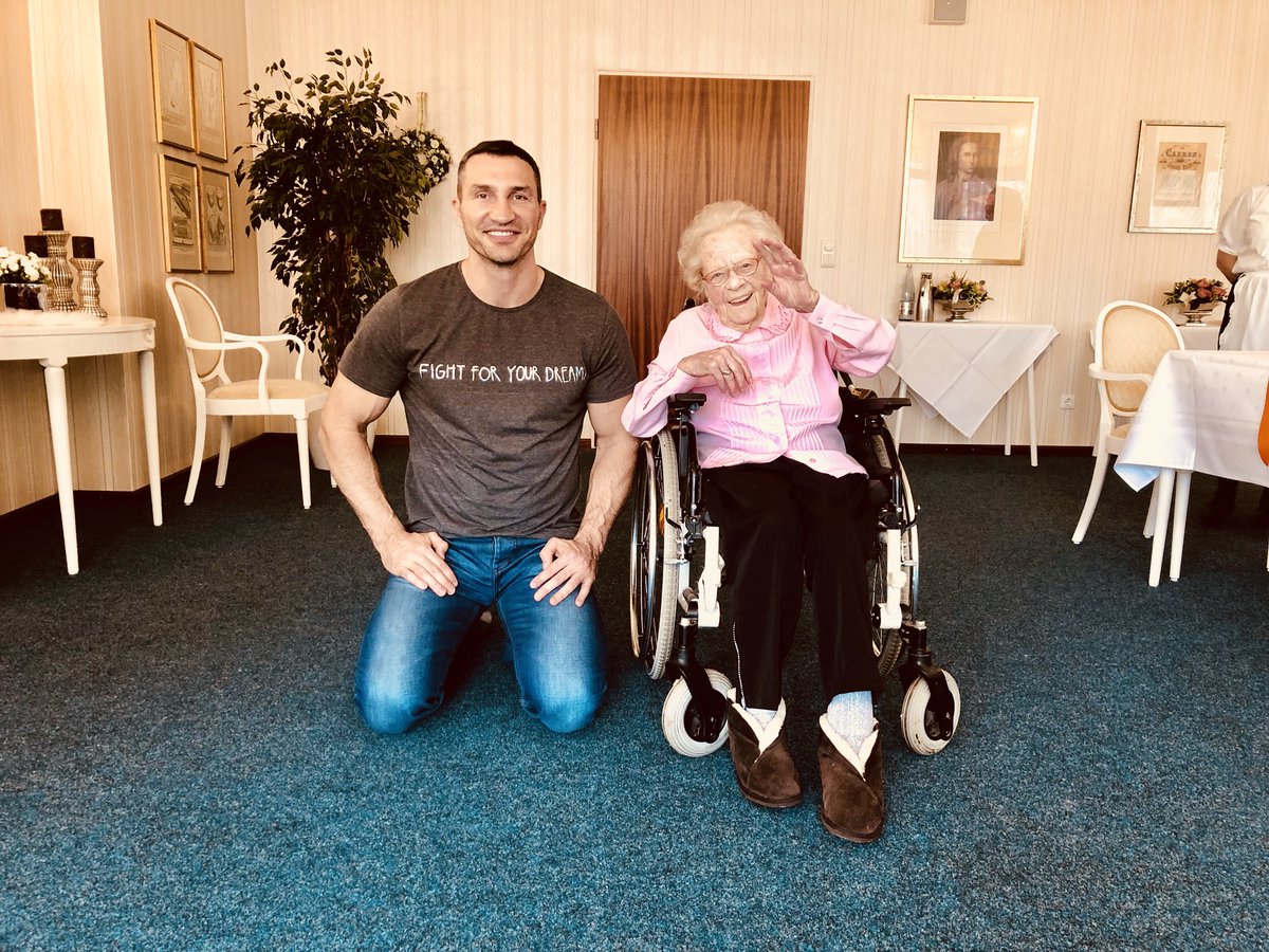 На своей страницей в Инстаграме Владимир Кличко выложил фотографию со своей 112-летней фанаткой. При этом экс-король тяжелого веса выразил восхищение Лидией Смудой:
