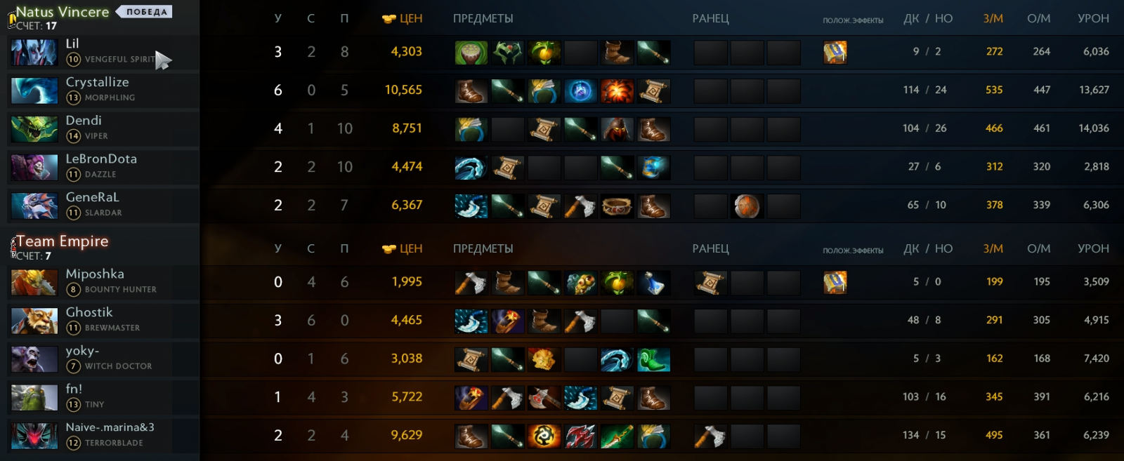 Примечательно, что керри украинской команды Владислав Crystallize Кристанек, за все три карты финала ни разу не умер. Такой результат встречался очень редко в истории киберспортивной Dota 2.