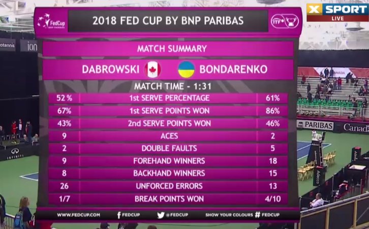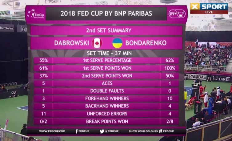Третий сет превратился в формальность, Дабровски боролась только за престиж. Со второго матчбола украинка сравняла счет в противостоянии с Канадой.