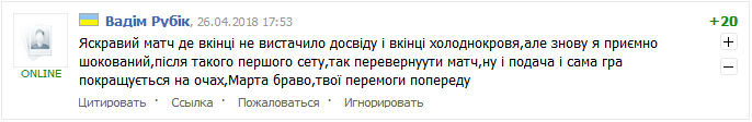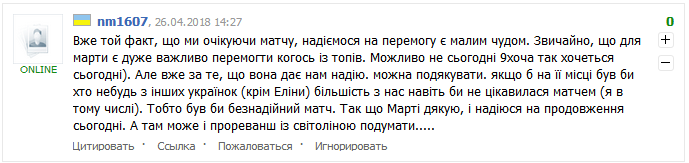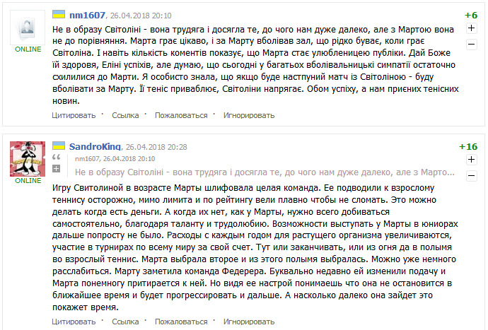 Вчерашний день можно назвать историческим. Впервые за долгое время перед матчем Элины Свитолиной на Sport.ua не было ажиотажа. Причиной тому стал поединок 15-летней Марты Костюк, просмотр которого для большинства оказался гораздо важнее, чем «очередная» игра первой ракетки Украины. Немного статистики: