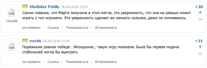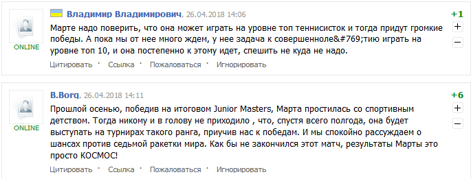 | Свитолина - Вондрусова | 14 тысяч просмотров, 36 комментариев | 8 тысяч просмотров, 21 комментарий |
