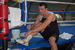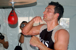 Американский журналист Карл Фрейтаг наведался в тренировочный лагерь Владимира Кличко в Палм-Бич (незадолго до отъезда украинца в Нью-Йорк, где уже сегодня он и Ибрагимов будет проводить публичную тренировку). Наш боксер славно поработал во время 10 раундов спаррингов с тремя разными противниками, после чего ответил на вопросы Карла.