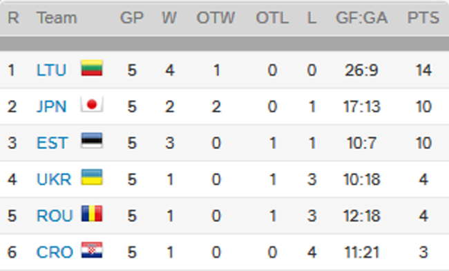 Всего украинские хоккеисты набрали 4 очка и заняли 4-е место, опередив Румынию и Хорватию. Вылетела сборная Хорватии.