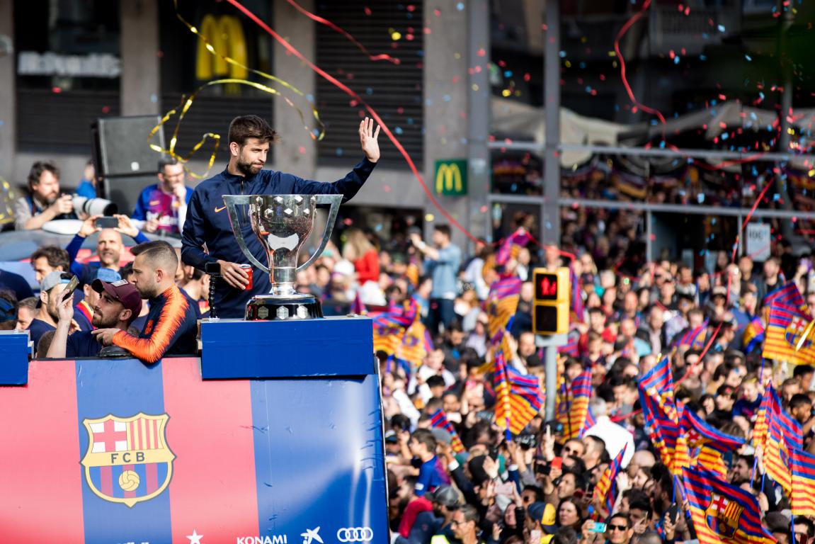 Испанская «Барселона», вчера завоевавшая звание чемпиона Испании, сегодня провела торжественный парад. Команда проехала в автобусе по улицам города, всем желающим демонстрируя трофей, который стал 25-м в истории клуба (имеются в виду только звания победителей Примеры).