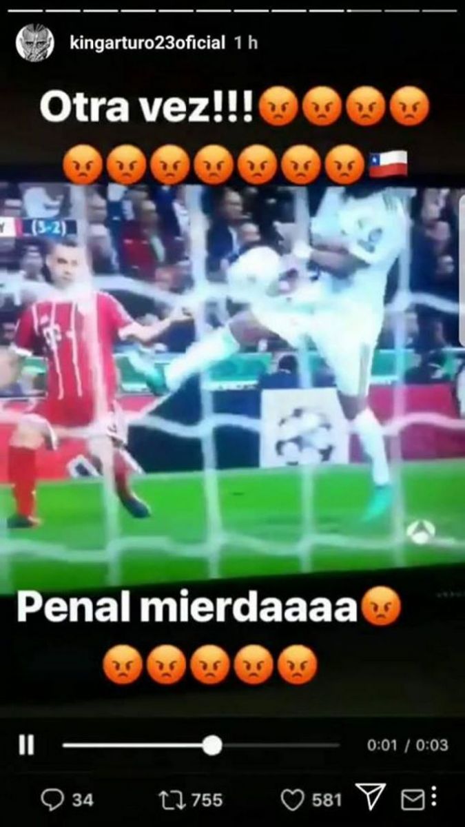 «Опять!!! Пенальти. Дерьмо», — написал Видаль в своих историях в Instagram.