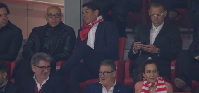 Вчера Надаль присутствовал на полуфинальном матче Лиги Европы против «Арсенала», явившись на трибуну с флагом «Атлетико».