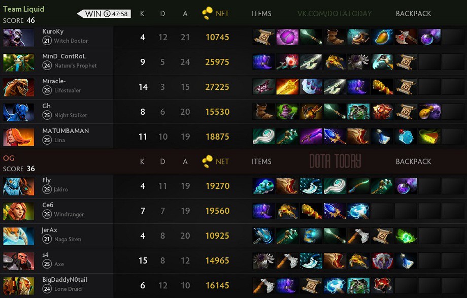 В следующем раунде Team Liquid сыграет с победителем пары Virtus.pro и PSG.LGD. OG упала в нижнюю сетку, где встретится с Mineski.