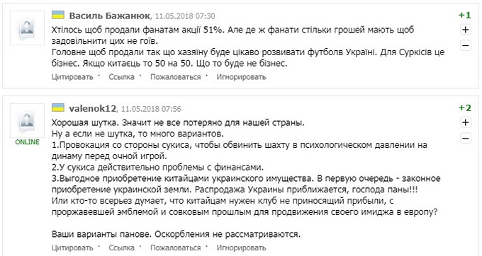 Большинство комментариев скептически отнеслись к новости. Но есть и мысли по поводу других покупателей «Динамо».