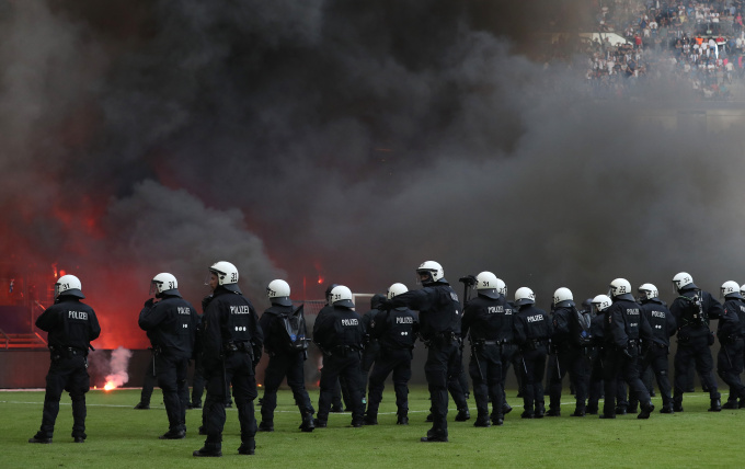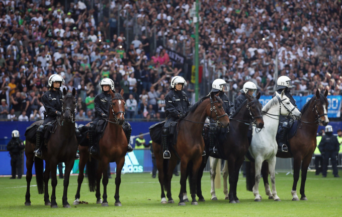 Собаки, лошади и полиция. Как успокаивают бушующих фанов Гамбурга