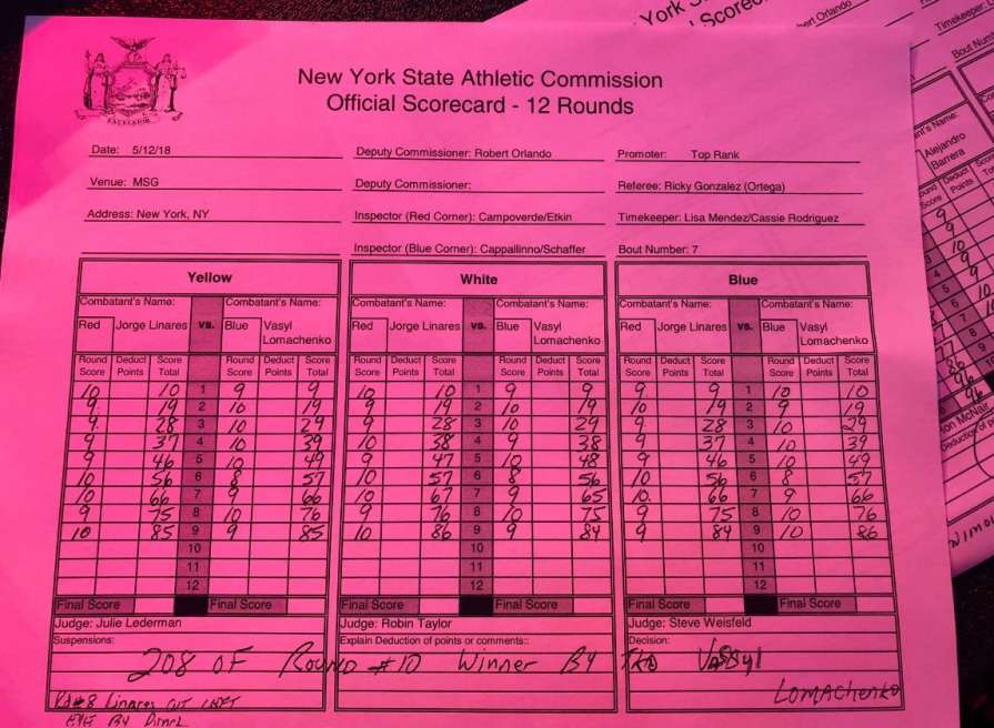 Ломаченко - Линарес. Судейские записки боя удивили бы всех