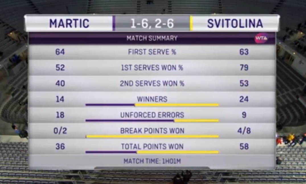 Из приятного стоит отметить, что Свитолина обыграла Мартич с тем же счетом, с которым хорватка вчера выиграла у Цуренко.
