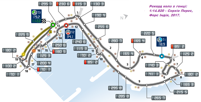 кваліфікація: 1:12.178 (2017, Кімі Райкконен) гонка: 1:14.820 (2017, Серхіо Перес) |