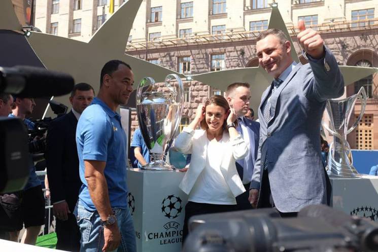 Кроме того, на Крещатике показали мини-футбольное поле, где 25 мая состоятся матчи между командами «Легенды «Реала», «Легенды «Ливерпуля», «Легенды УЕФА» и «Шевченко и друзья». Футболистов команды Шевченко будут тренировать братья Кличко.