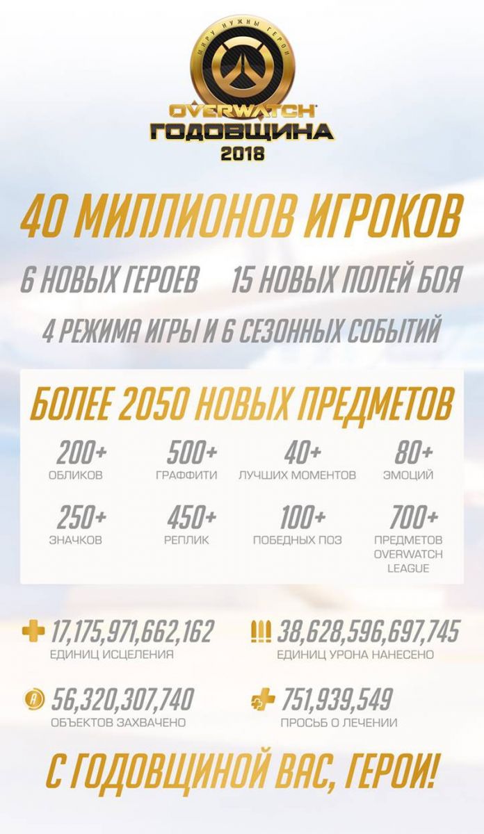 В честь второй годовщины игры создатели Overwatch подготовили инфографику с интересными фактами.