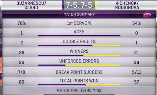 Н. Киченок / Ан. Родионова (Украина/Австралия, 3) - Бузэрнеску / Олару (Румыния) 5:7, 5:7