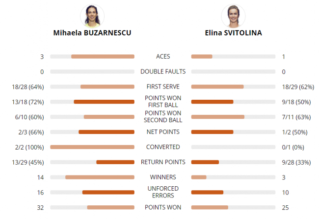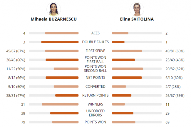 Элина Свитолина (Украина) – Михаэла Бузарнеску (Румыния) – 3:6, 5:7