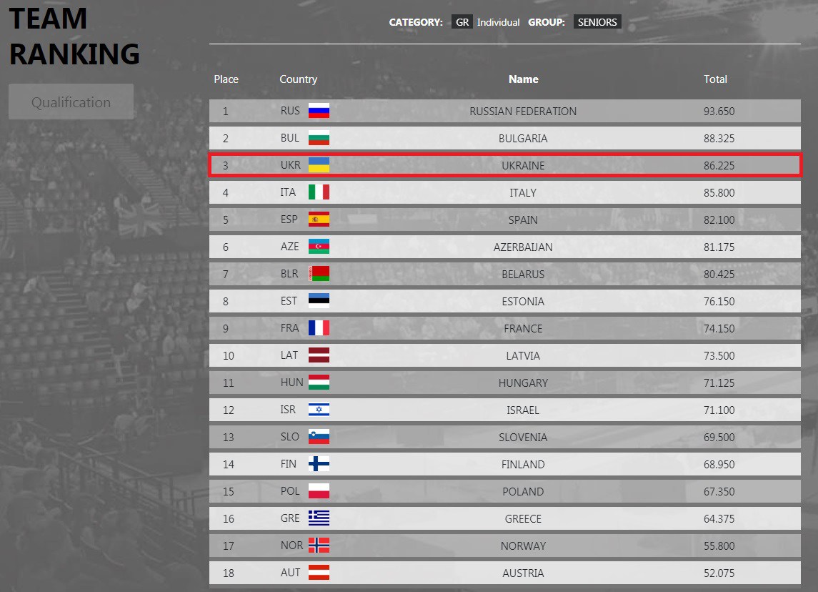 Команда Украины по сумме баллов юниорок и групповичек занимает промежуточное третье место.