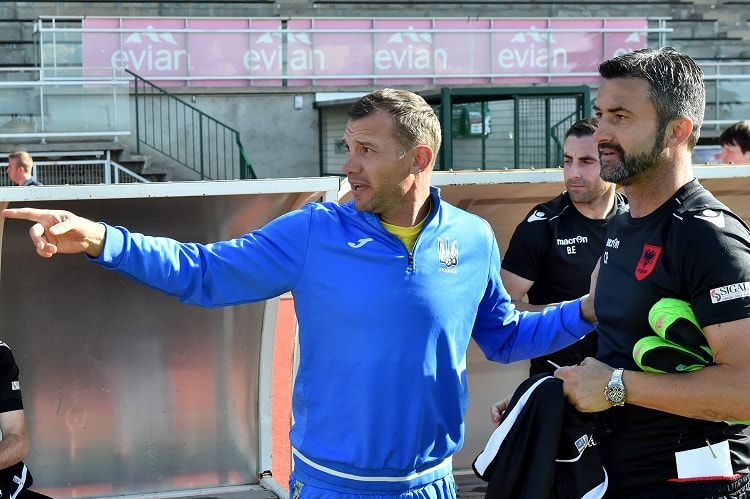 Заключним тренуванням на нинішньому зборі, як буває майже завжди, стало передігрове заняття. Синьо-жовті приїхали на стадіон «Каміль Фурньє» у той час, коли албанці якраз завершили своє тренування. Відтак Андрій Шевченко, Мауро Тассотті та Андреа Малдера тепло привіталися з головним тренером збірної Албанії — екс-оборонцем «Мілану» та збірної Італії Кристіаном Пануччі.
